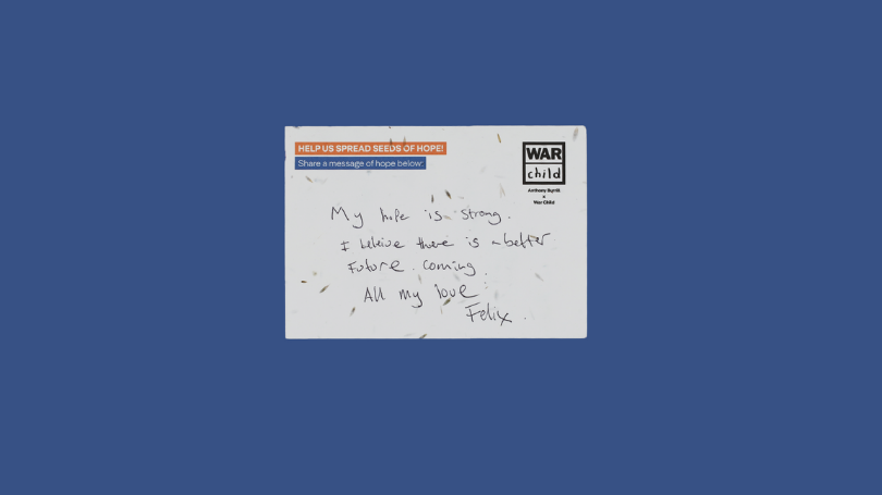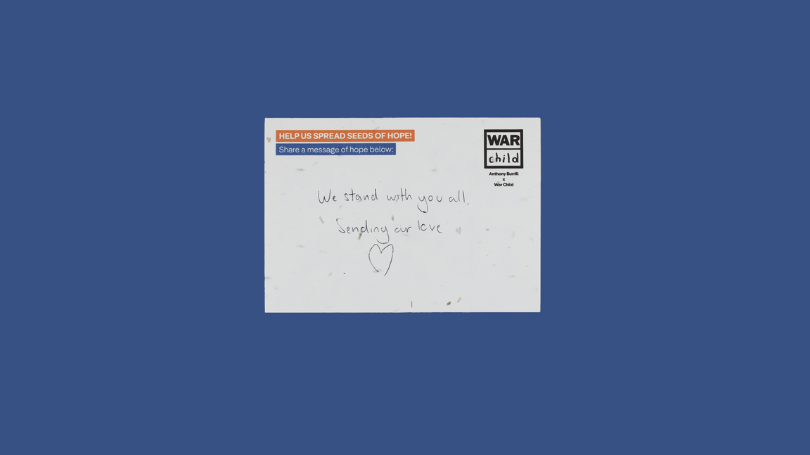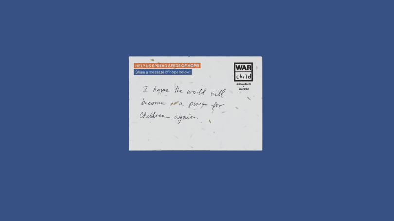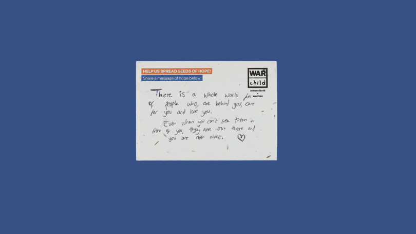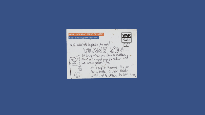 The seeded postcards are being used to plant wildflower gardens of HOPE in support centres for children and families in the countries where War Child works.