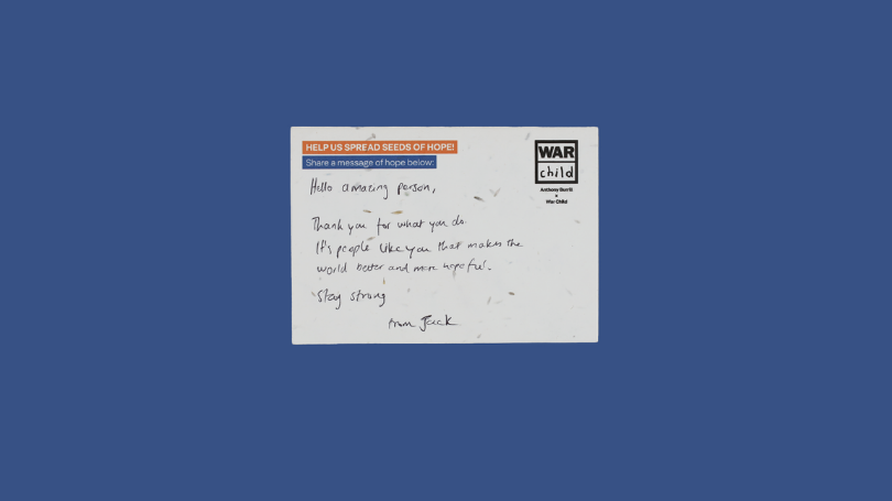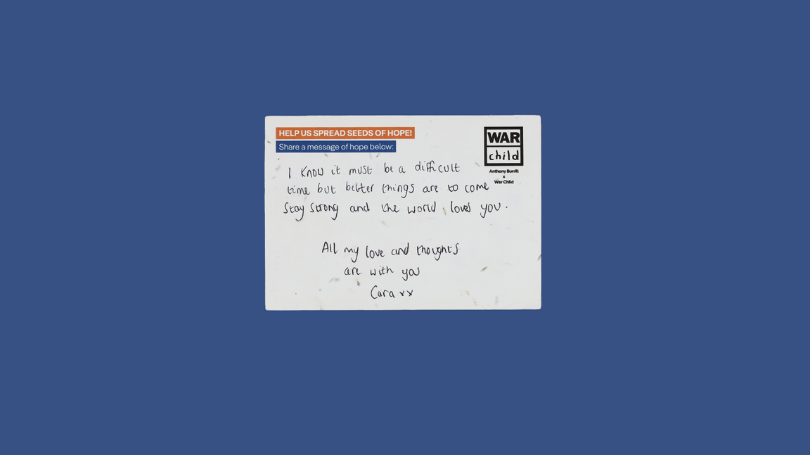 The seeded postcards are being used to plant wildflower gardens of HOPE in support centres for children and families in the countries where War Child works.