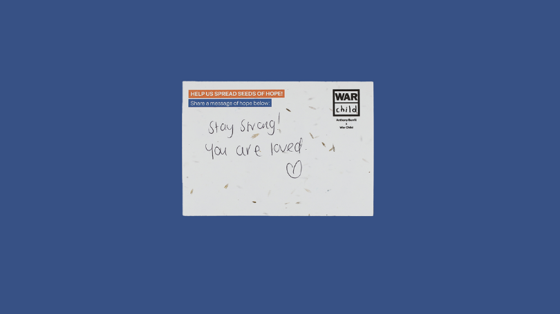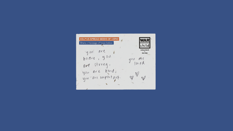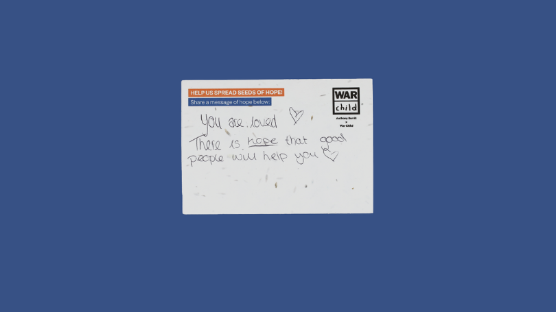 The seeded postcards are being used to plant wildflower gardens of HOPE in support centres for children and families in the countries where War Child works.