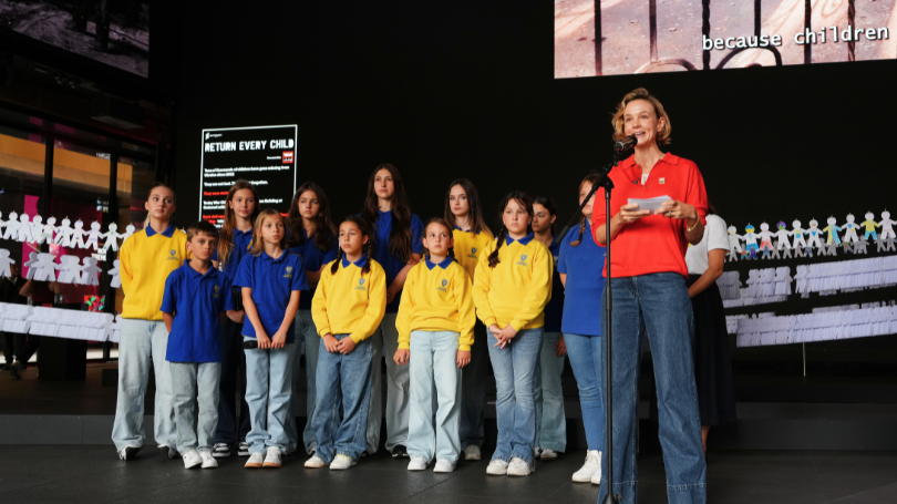 Evgeny Afineevsky for generously sharing his work and time with us in support of our campaign. Our video installation features powerful scenes and photography from his award-winning documentary ‘Children in the Fire’ (2025). Through live-action footage and Ukrainian artists’ animation, the documentary shows the deep bravery, strength and resilience of the Ukrainian children, and their hope for a nonviolent world.